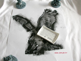 독수리모양을 오려내고 패브릭용스탬프 잉크를 거꾸로 들고 두드리기 시작.