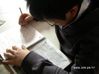 매일, 신문기사중 하나를 선택해서 노트에 붙이고 그 기사를 그대로 베껴쓰기.
