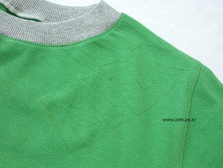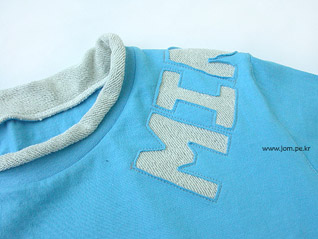 옷 안쪽에 다른 원단을 덧대서 이니셜을 박음질한후