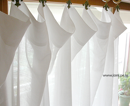하얀리넨 커텐의 뽀송한 느낌,여름날 하얀 햇볕에 바싹 마른 소창의 느낌이랄까...