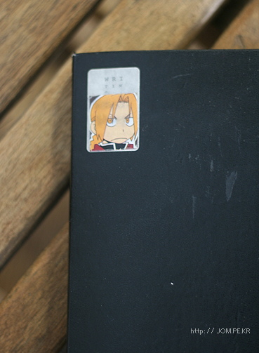 부적같은 '강철의 연금술사 에드워드' 스티커. 이 수첩을 처음 샀을때 미노가 붙여준 것.