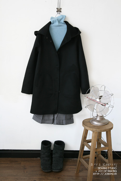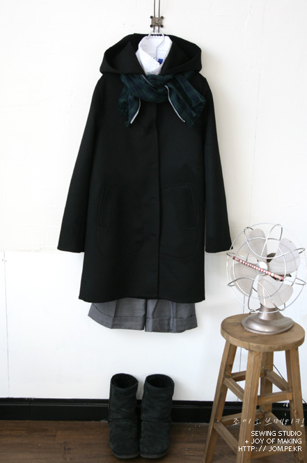 아주아주 단순한 디자인의 후드코트를 하나 봤다.