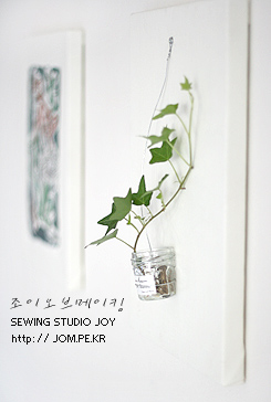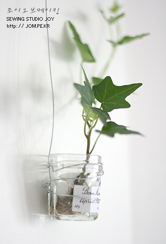 굴러다니던 본마망미니쨈병에 철사를 걸어 아이비를 꽂아