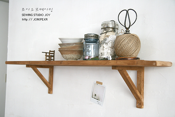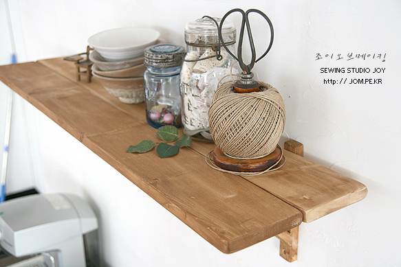 전부터 만들고 싶어서 나무만 사두었던 선반 하나를 만들어 달았다.