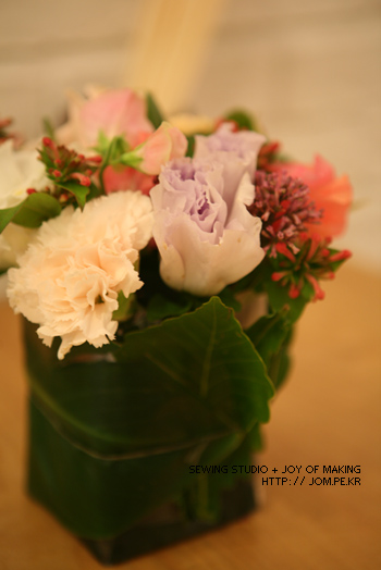 그녀의 친구가 테이블 마다 세팅해 놓고 간 꽃.